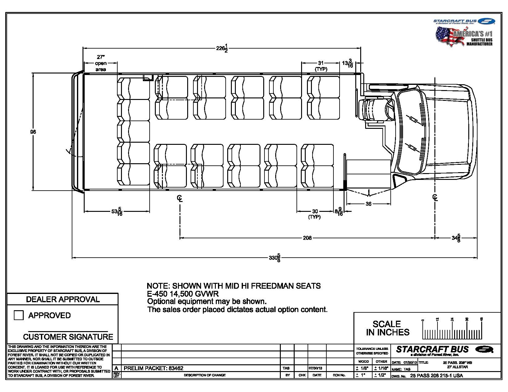 This Starcraft Allstar comfortably seats 25 passengers + driver and comes with a rear luggage space. This bus has all of the amenities that you are looking for in a medium sized bus with Luxe two-toned leatherette seats, USB charging stations, TV monitors, 70K BTU A/C system, and built-in backup camera. The Allstar is ideal for retirement homes, assisted/independent living, transit agencies, and LTC facilities.