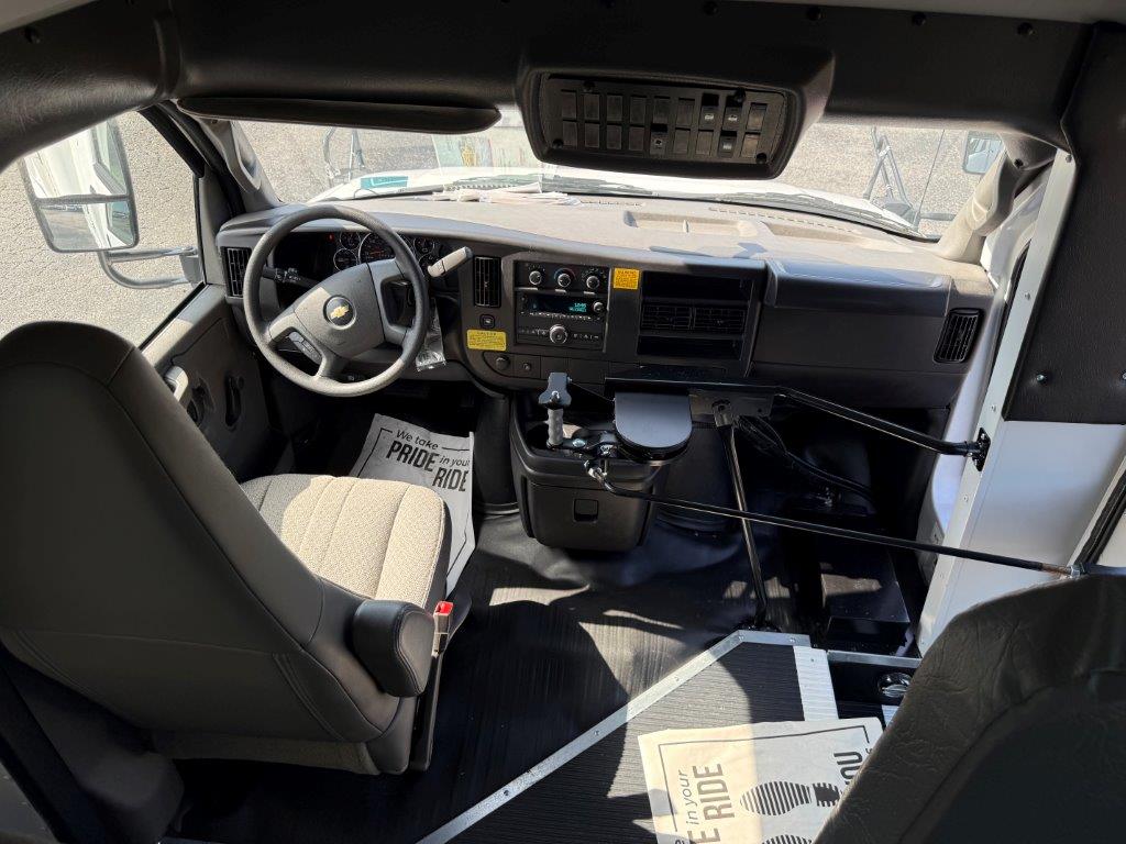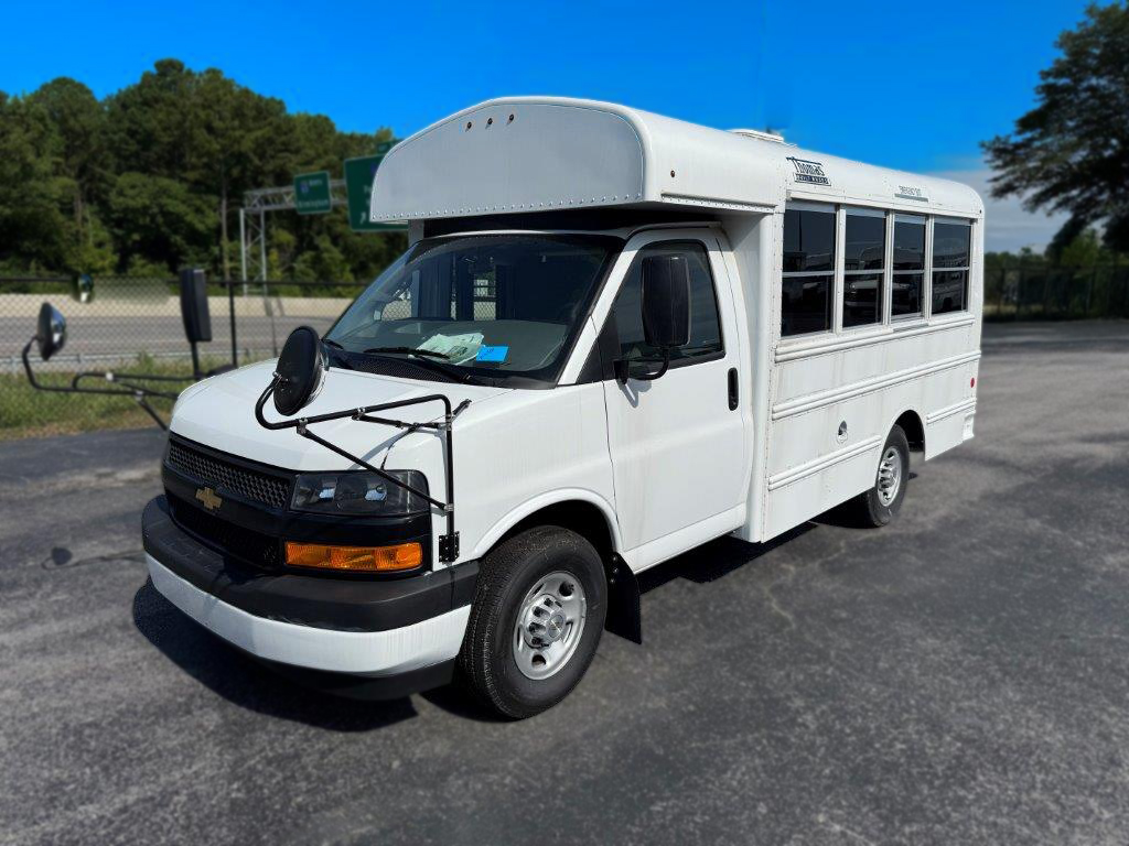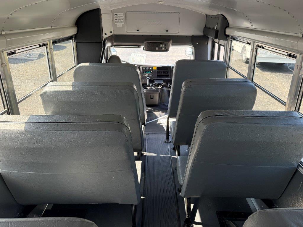 The 2025 Thomas (SRW) MFSAB is a new, 14-passenger + driver activity bus, ideal for schools, daycare centers, or small group transport. Built on a Chevy 3500 chassis and powered by a 4.3L V6 gas engine, this Non-CDL vehicle offers a smooth ride with ABS hydraulic brakes and 70,000 BTU heating for passenger comfort. It features a single rear wheel (SRW) configuration and includes space for additional storage. Stock #: T-1.