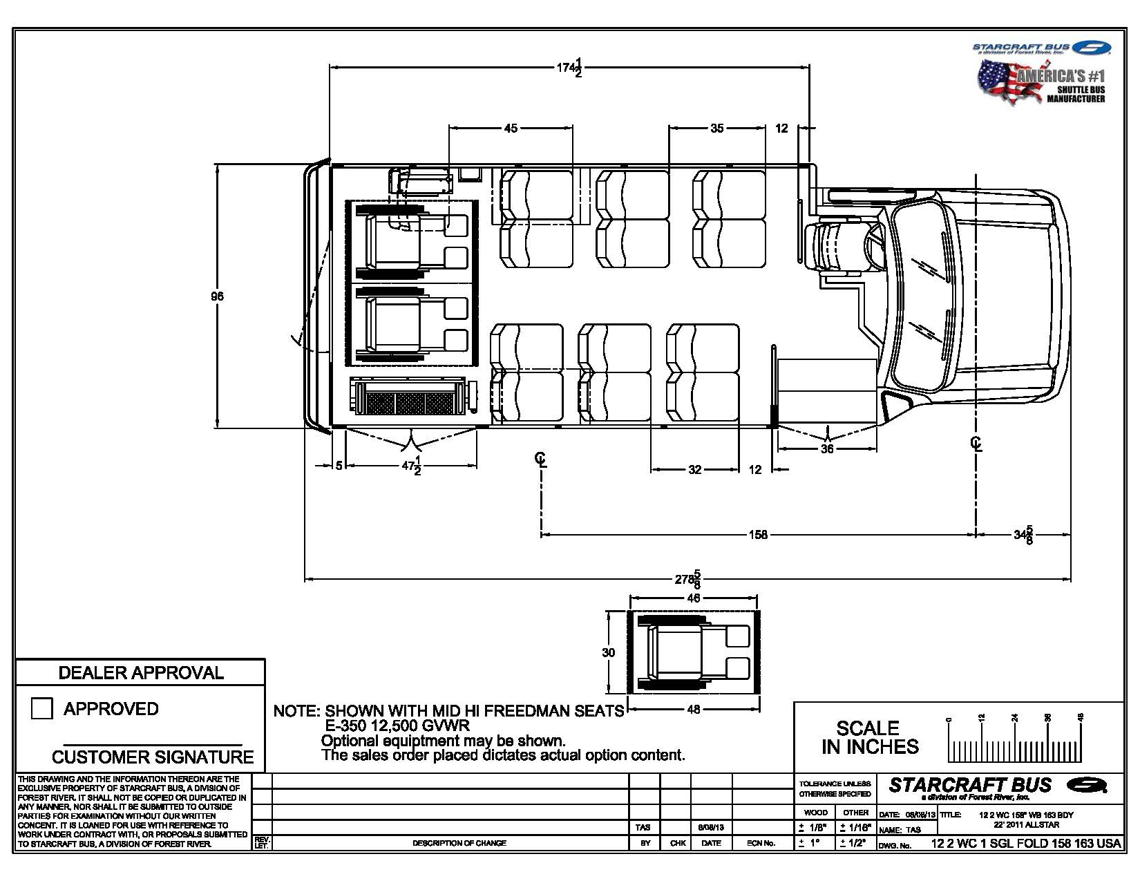 Built for safety, designed for comfort. Seating up to 14 passengers, it remains one of the best-selling shuttle buses on the market. Standard features include a backup camera and low 4″ floor wheel wells for added comfort. Our fully loaded ADA unit offers upgraded FMS Palermo seats, charging ports, faux wood flooring, and overhead luggage racks. Now available with 12-passenger seating and two single flip seats (vs. one), maximizing non-CDL capacity to 14. Ideal for retirement homes, assisted/independent living, transit agencies, and LTC facilities. Ask about upgrade options!