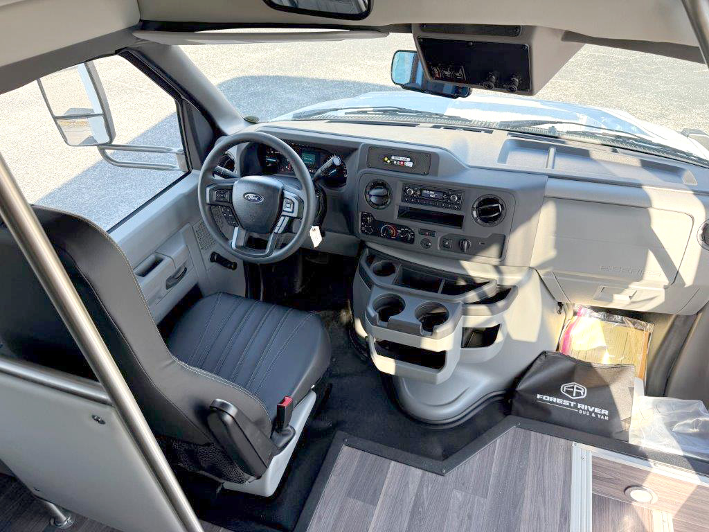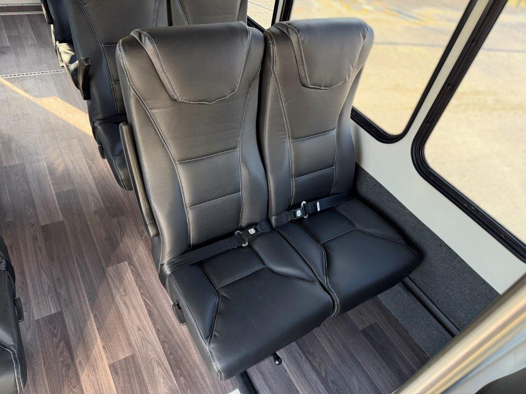 Built for safety, designed for comfort. Seating up to 14 passengers, it remains one of the best-selling shuttle buses on the market. Standard features include a backup camera and low 4″ floor wheel wells for added comfort. Our fully loaded ADA unit offers upgraded FMS Palermo seats, charging ports, faux wood flooring, and overhead luggage racks. Now available with 12(14) passenger seating and two single flip seats (vs. one), maximizing non-CDL capacity to 14. Ideal for retirement homes, assisted/independent living, transit agencies, and LTC facilities. Ask about upgrade options!